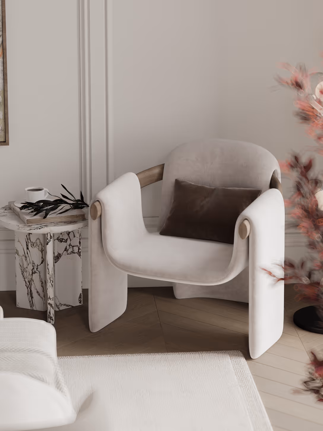 Conceived as an artist's kitchen, this striking space balances dramatic marble, curated lighting, and thoughtful design to inspire creativity, facilitate entertaining, and encourage culinary experimentation.