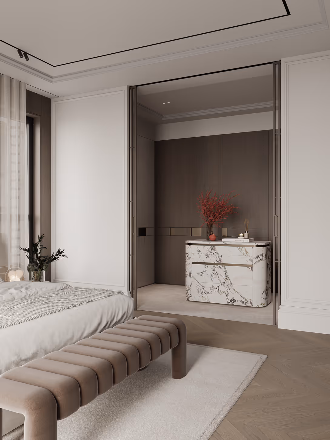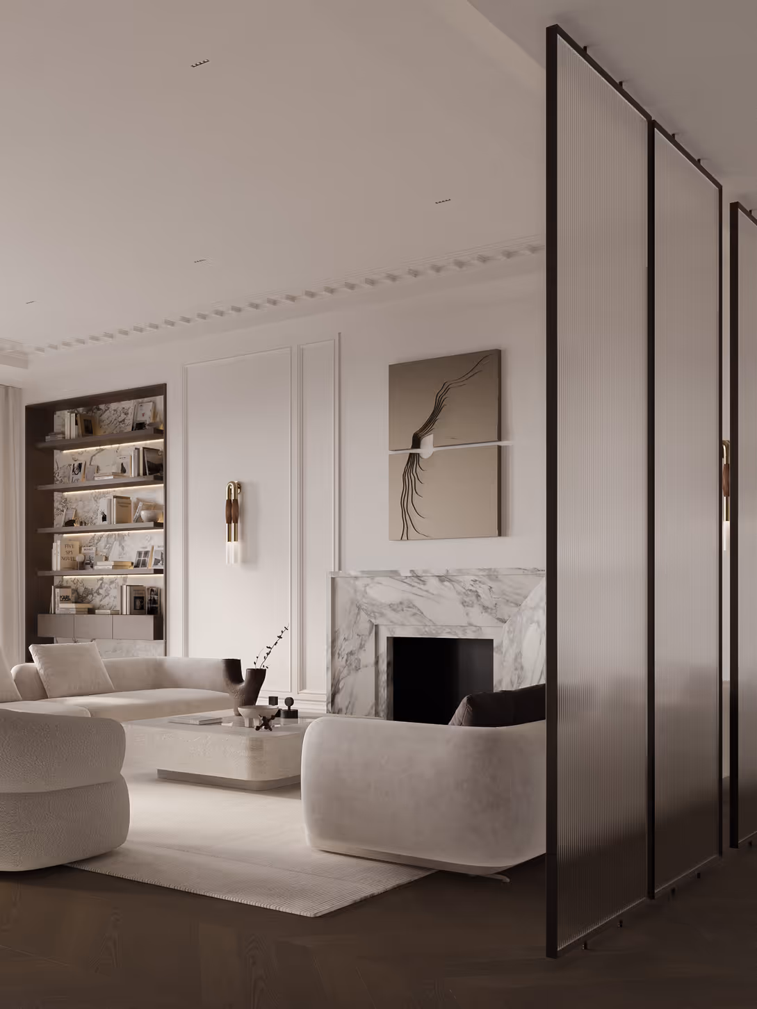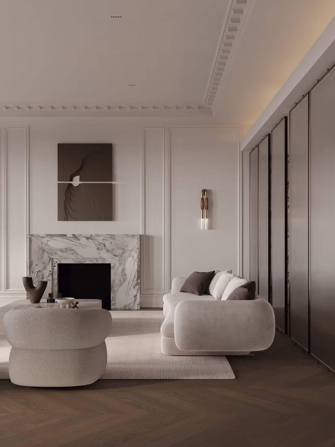 Custom millwork and detailed moldings crafted by our team bring timeless elegance and architectural character throughout the residence.